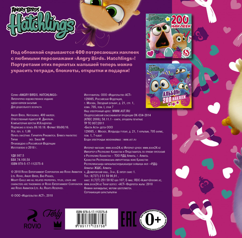 Angry Birds. Hatchlings. 400 наклеекВ данный момент этот товар отсутствует в продаже. Возможно, у нас найдется аналогичный или похожий товар здесь. Серия: Angry Birds. Hatchlings Под обложкой скрываются 400 потрясающих наклеек с любимыми персонажами «Angry Birds. Hatchlings»! Портретами этих пернатых малышей теперь можно украсить тетради, блокноты, открытки и подарки! |