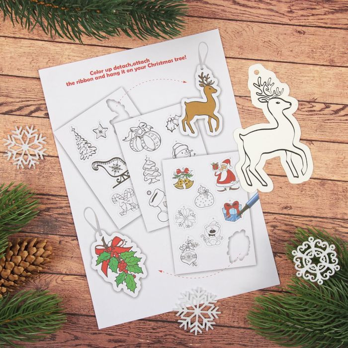 Украшение ёлочное под раскраску «Атрибуты праздника»В данный момент этот товар отсутствует в продаже. Возможно, у нас найдется аналогичный или похожий товар здесь. Порадуйте ребёнка набором для изготовления новогодних подвесок. Ему предстоит раскрасить каждый рисунок в любимые цвета, а затем выдавить фигурки из основания и задекорировать ими ёлочку. |