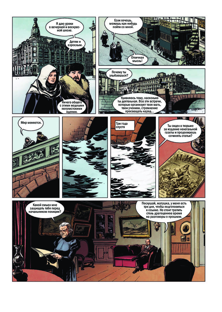 Комикс рассчитан на хорошо подготовленного читателя, уже знакомого с биографией Ленина. Основные события в жизни Владимира Ильича переданы очень спутанно, и за ходом повествования уследить непросто. Взаимоотношения Ленина с семьёй Керенских описаны также очень плохо. Судя по тому, как иллюстратор изображает вождя мирового пролетариата, между 1887 и 1893 с ним произошло что-то очень страшное, он облысел и постарел сразу лет на 20. В комиксе встречаются опечатки, в некоторых словосочетаниях отсутствуют пробелы, хотя сам комикс занимает не более 50 страниц и в нем не так много слов. В конце книги есть карта, на которой, наверное, обозначены какие-то важные в жизни Ленина места и маршруты, но легенду к этой карте решили не переводить на русский язык, и напечатали её на французском.