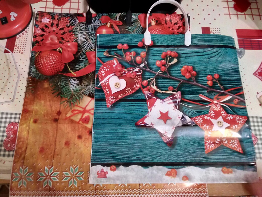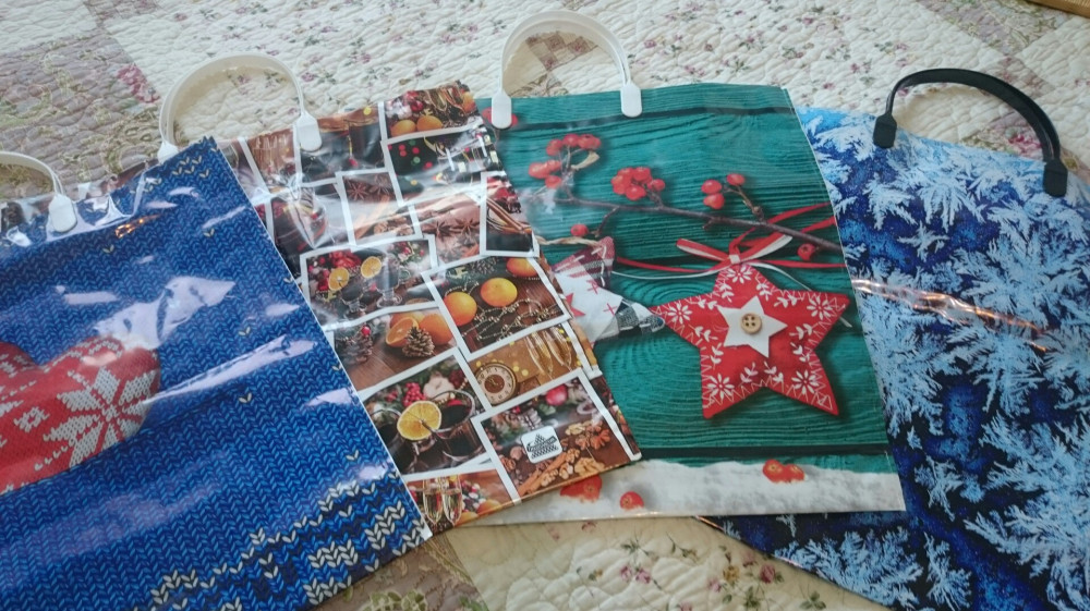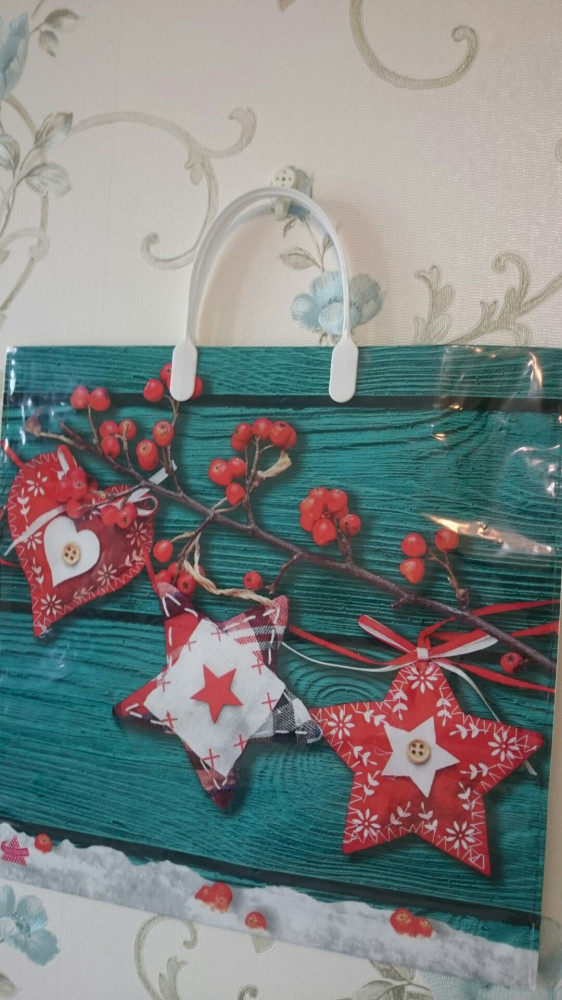 Замечательный праздничный пакет. Сделан из плотного пластика, с пластиковыми ручками. Подойдёт как для упаковки подарка, так и для повседневного использования.