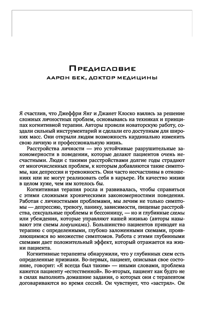 Книга написана доступным и понятным языком. Объясняется с примерами из практики и в книге есть тесты на определение тех или иных дезадаптивных схем. Переплет хороший, страницы белые, бумага качественная. Рекомендую!