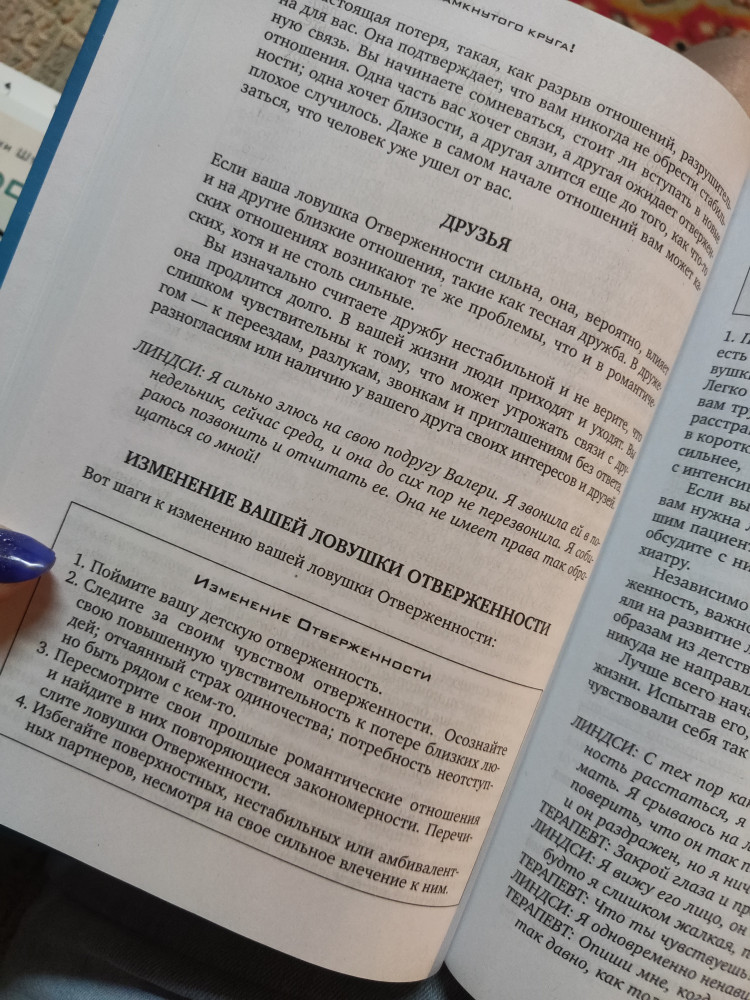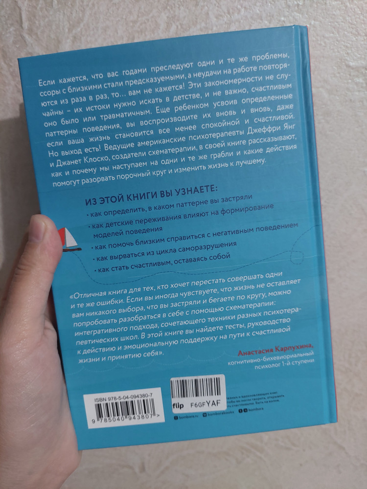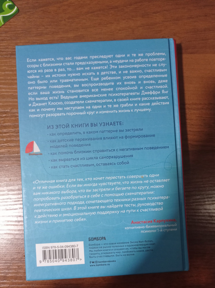 Книга в твёрдом переплете, листы белые. В книге описаны 11 ловушек схема - терапии Д. Янга. Рекомендовал психолог, очень помогает разобраться в паттернах поведения. Рекомендую к прочтению. P.S. на текущий день, схем 18.