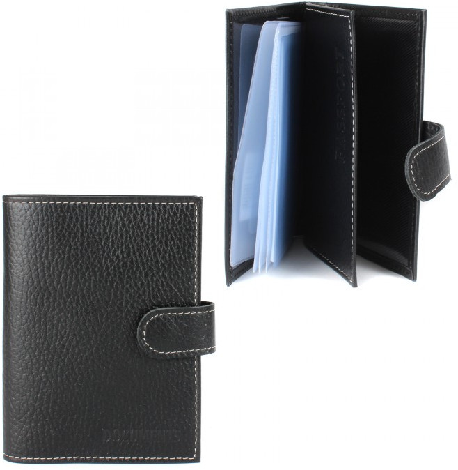 Обложка для автомобильных документов и паспорта, натуральная кожа, с хлястиком.