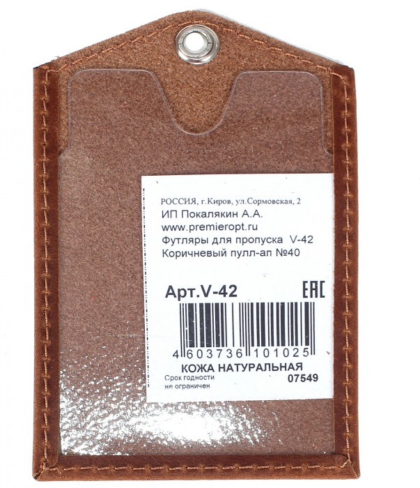Обложка для пропуска / карточки / проездного билета, натуральная кожа, 1 отделение.