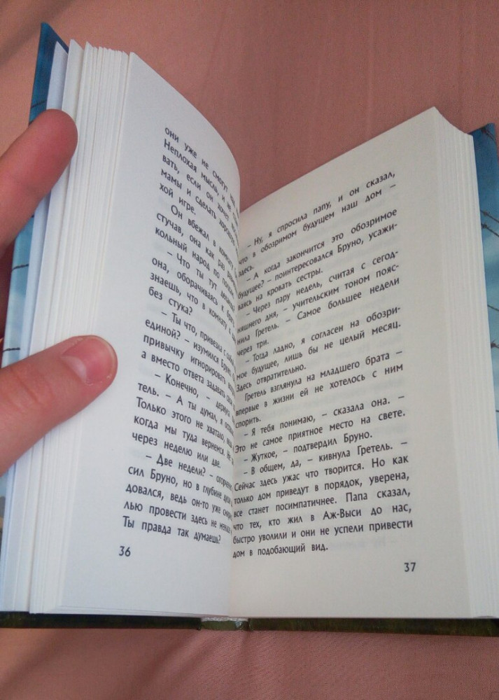 Вы знаете!!! Во-первых Большое спасибо flip за быструю доставку!+++за скидочку!!!Отдельно,конечно, по книге! Сама книжка не большая, компактная, в руках удобно держать! Цена соответствует! Прочитала её на одном дыхании! Очень рекомендую особенно тем, у кого дети школьники. В школах историю переворачивают, а эта книга даст мягкое начало для изучения Фашизма! Сюжет конечно морально тяжёлый. Вот они два мальчика одного года и им бы вместе играть и учиться, но гитлеровский режим разделил их жизни на две неравные судьбы! И то что пережили родители в конце истории- это лишь одна беда одной семьи, а таких было тысячи!Прям рекомендую!!!