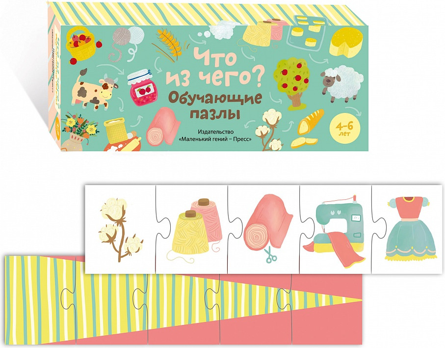 Игра «Что из чего?» поможет ребенку усвоить из чего и как создаются известные ему предметы. Собирая пазлы он поймет, что любая работа делается с определенном порядке и научится рассуждать и выстраивать этот порядок.