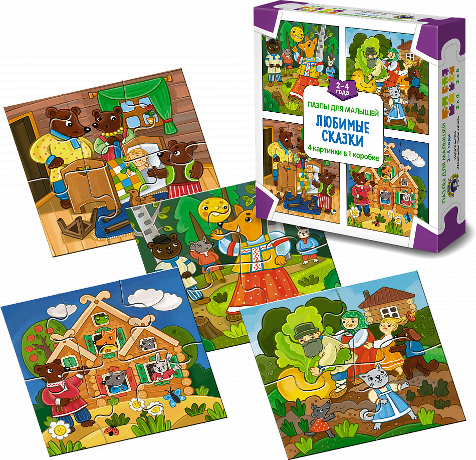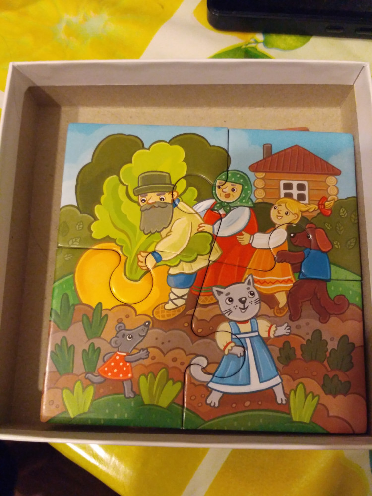 Замечательные пазлы. Сделаны из плотного картона, прочные. Детки развивают не только мелкую моторику, но и речь, рассказывая сказки. Рекомендую.