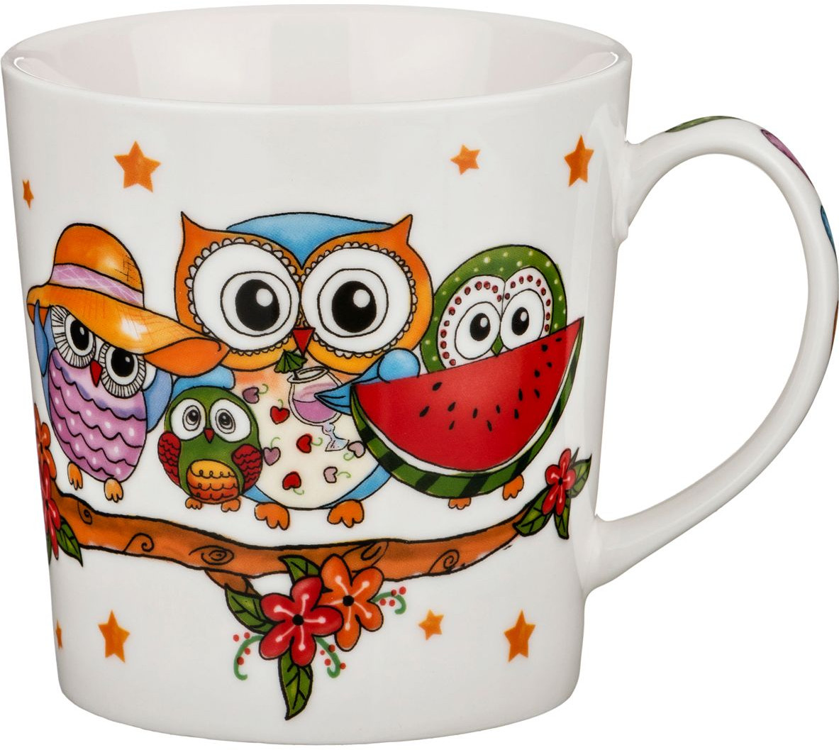 Красивая кружка, белый фарфор, подарочная упаковка, все очень достойно, рисунки яркие веселые.