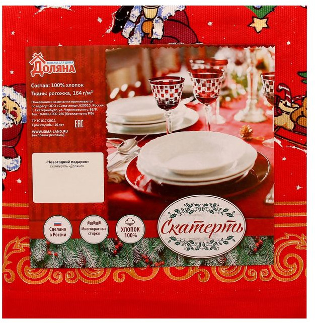 Новогодняя скатерть великолепно украсила новогодний стол, очень понравилась, красное, яркое чудо, спасибо Flip! Когда заказывала, этого товара не оказалось на складе, я оставила свою заявку на будущее, и о чудо, буквально перед самым Новым Годом 2018 мне сообщили, что товар привезли, еще раз огромное спасибо, я обязательно буду у Вашей фирмы заказывать подарки для своих родных и близких! Доставка организована великолепно, с предварительным оповещением и привозом в удобное время для клиента!!!Молодцы!