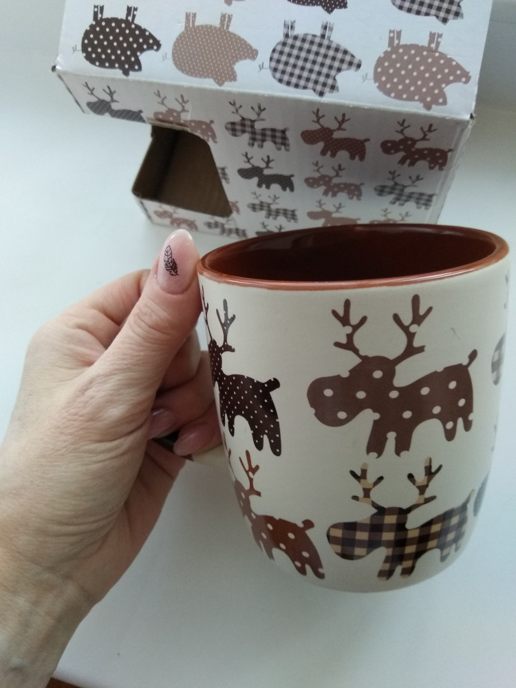 Кружка массивная, красивая, я бы даже сказала мужская, выбрала другой более изящный вариант с кошками. Но и эта кружка прекрасная!