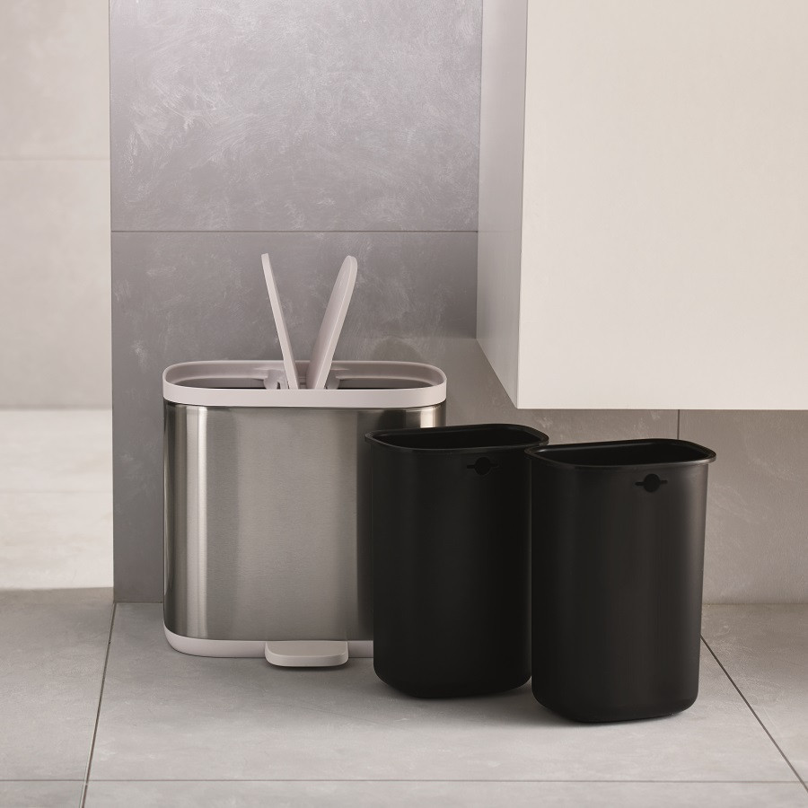 В данный момент этот товар отсутствует в продаже. Возможно, у нас найдется аналогичный или похожий товар здесь. Серия: Split Стильный аксессуар для ванной, который поможет сортировать мусор и понравится всем, кто заботится об окружающей среде. Съёмный контейнер сделан из эргономичного материала, который удобно протирать и мыть. В нем предусмотрено 2 отсека разных размеров — для бутылочек и более мелкого мусора.