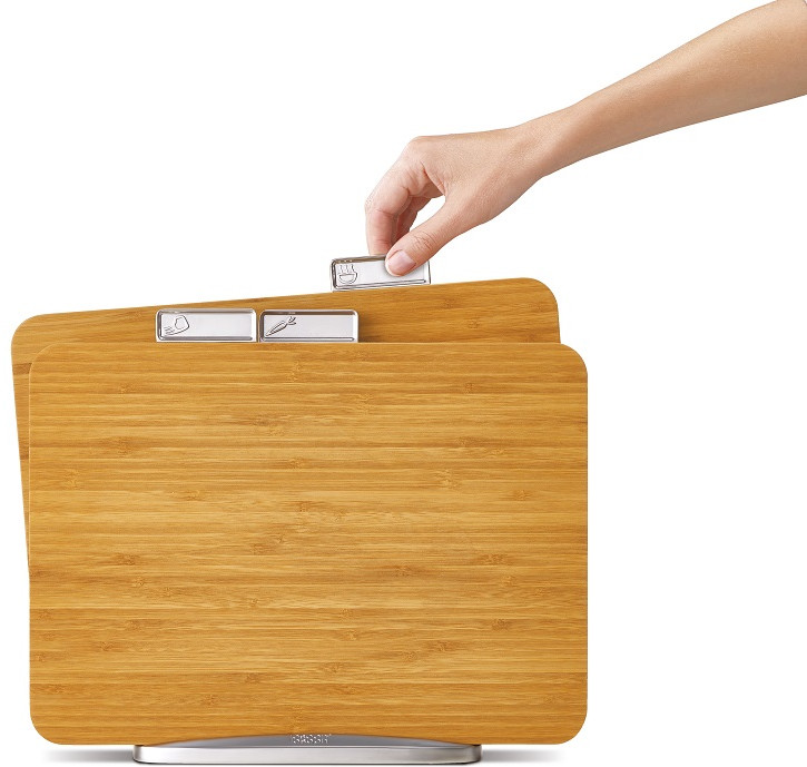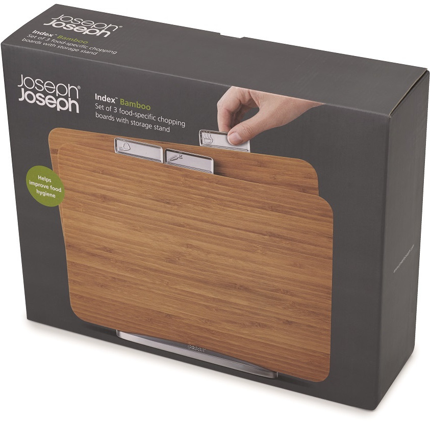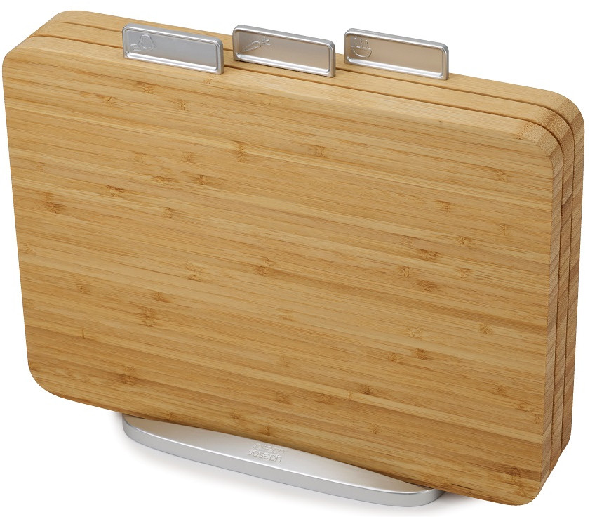 Новая интерпретация бестселлера Index от Joseph Joseph. В набор входит 3 бамбуковых доски, которые можно использовать с двух сторон. Благодаря компактной форме набор меньше места и отлично вписывается в современные интерьеры кухонь.