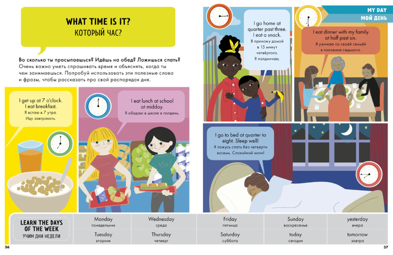 Книга не понравилась вовсе. Это худшее пособие по изучению языка. Я сама лингвист, решила приучать ребенка к языку с помощью занимательной книги с картинками и прогадала. В этом пособии полно грамматических и фактических ошибок, которые даже мой 4 летний сын нашел. Пишут в разделе супермаркет отдел с овощами, а рисуют груши; используют фразы которыми со времен царя гороха никто не пользуется. И еще много и много недочетов, которые я сама исправляю прямо в книге. Автору, составителю, переводчику и редакторам ставлю двойки. :@ Не берите - бессмысленно.