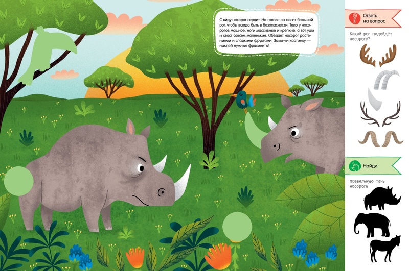 Книжки с наклейками. ЖивотныеВ данный момент этот товар отсутствует в продаже. Возможно, у нас найдется аналогичный или похожий товар здесь. Серия: Книжки с наклейками Книга «Животные. 55 наклеек» — это целая сокровищница занятий и игр для вашего малыша. Узнавать об обитателях джунглей, саванн и лесов он будет в легкой и захватывающей форме: например, нужно найти спрятавшегося крокодила, обнаружить все отличия между коалами, догадаться, какая тень принадлежит носорогу, и посчитать трудолюбивых пчел. |