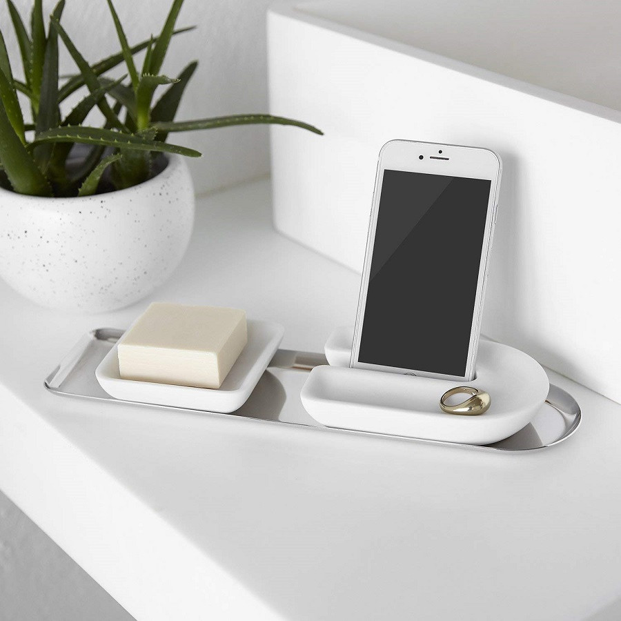 Umbra Держатель для телефона «Junip»В данный момент этот товар отсутствует в продаже. Возможно, у нас найдется аналогичный или похожий товар здесь. Подставка для телефона и мелких украшений выполнена в форме буквы U. Она будет отлично смотреться как в спальне на прикроватной тумбочке, так и в коридоре или даже в ванной. Универсальный белый цвет и оригинальное матовое покрытие делают этот аксессуар изысканным дополнением к любому интерьеру. Дизайн коллекции Junip разработала всемирно известное бюро архитектуры и дизайна Gensler. |