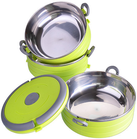 Mayer & Boch Термос пищевой 3-х ярусныйВ данный момент этот товар отсутствует в продаже. Возможно, у нас найдется аналогичный или похожий товар здесь. Пищевой термос станет прекрасным дополнением к набору ваших кухонных принадлежностей. Термос предназначен для хранения горячих блюд, сохраняя нужную температуру. Корпус выполнен из цветного полипропилена. Внутренний резервуар — из высококачественной нержавеющей стали, не вступающей в реакцию с продуктами и не искажающей вкус приготовленных блюд. Данный термос обладает не только прекрасными термоизоляционными качествами, но и непревзойденной надежностью. Благодаря эргономичной ручке его легко и удобно транспортировать. Крышка плотно закрывается. Это идеальный вариант для переноски нескольких разных блюд. Подходит для мытья в посудомоечной машине. |