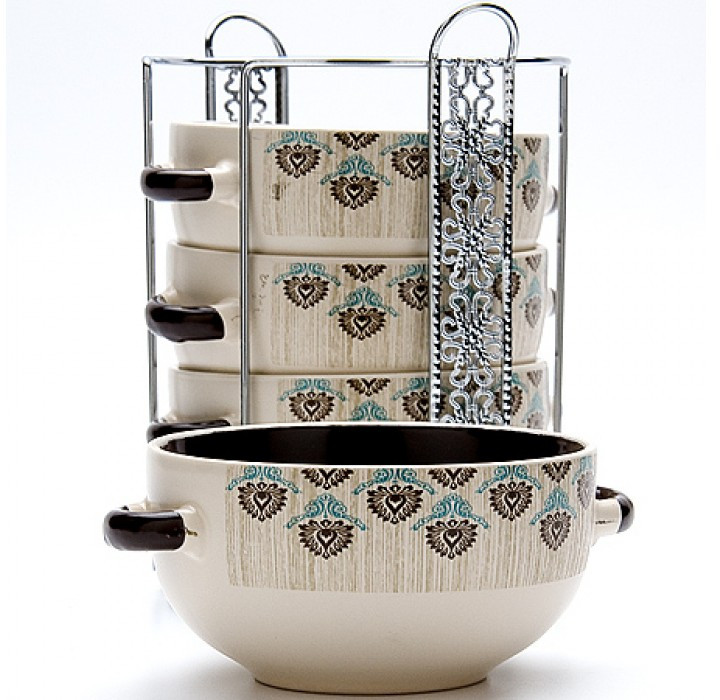 Loraine Набор супницВ данный момент этот товар отсутствует в продаже. Возможно, у нас найдется аналогичный или похожий товар здесь. Набор из 4-х супниц выполнен из высококачественной керамики и украшен декоративным рисунком. Супницы компактно располагаются на оригинальной подставке из нержавеющей стали и не занимают много места при хранении. В керамической посуде блюда сохраняют свои вкусовые качества, кроме того она обладает термической и химической прочностью. Благодаря оригинальному дизайну, такие супницы отлично подойдут как для ежедневного использования, так и для праздничной сервировки стола. Изделия оснащены двумя удобными ручками. В наборе: 4 супницы, 1 подставка. Подходит для мытья в посудомоечной машине. |