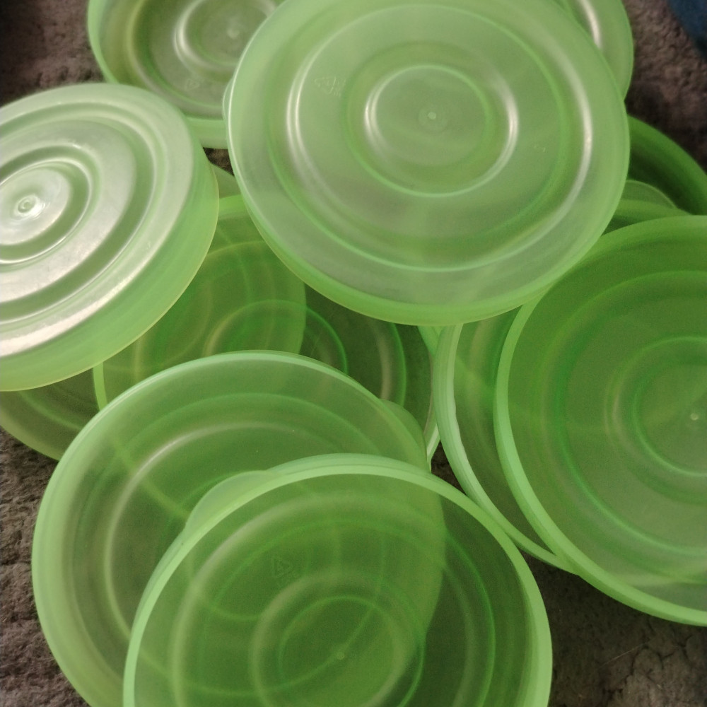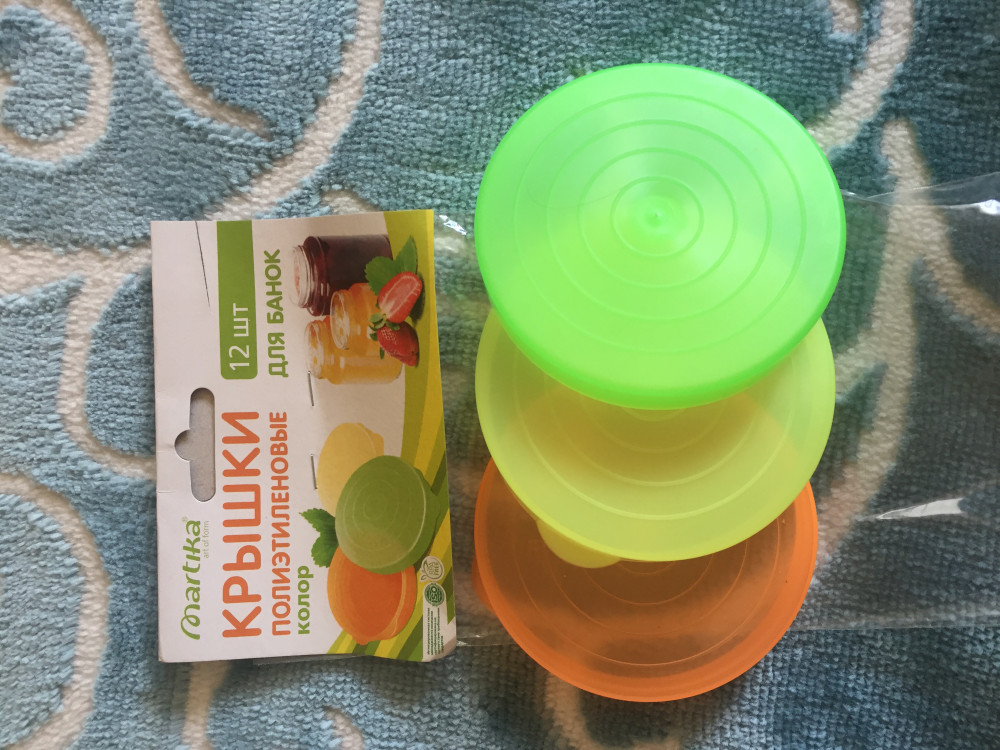 Стандартные крышки на банки 1-3 литровые. Плотно закрываются, расцветки яркие , радуют глаз. Пластик мягкий, в ладони легко сгибаются