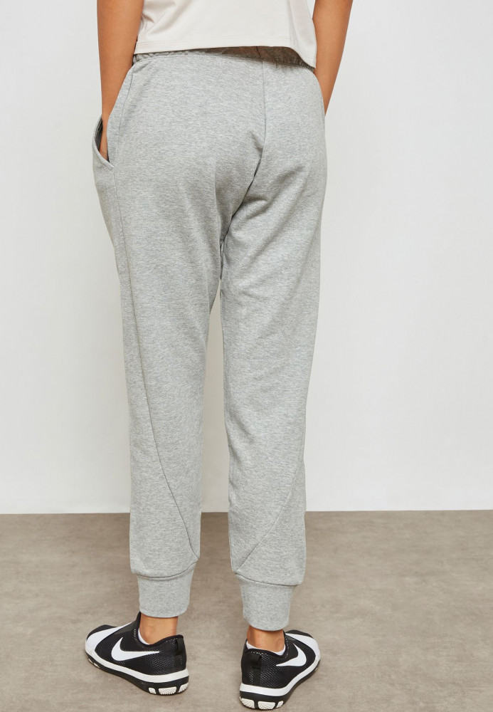 Удобные, спортивные брюки темного цвета для занятий спортом и тренировок, взрослая модель создана для максимального комфорта и сохранения тепла во время тренировок в прохладную погоду. Модель украшена логотипом производителя, который расположен на левой штанине. Брюки имеют удобную, свободную посадку, внизу штанин вшиты широкие, эластичные манжеты, что препятствует проникновению внутрь холодного воздуха. На поясе расположена широкая, эластичная резинка с дополнительным, фиксирующим шнурком. Удобные, симметричные карманы вшиты в боковых швах и отлично подойдут для хранения мелких предметов.