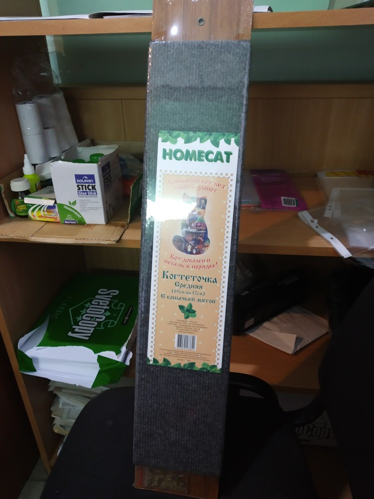 Когтеточка просто отличная. Очень хорошо сделана. Большая. Ковролан тонковат, но на какое-то время должно хватить. Мои кошастые ее игнорят. Пока лежала на полу еще корябали, а как только прикрутила к стене - делают вид, что ее не существует.