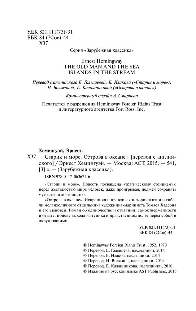 Старик и море. Острова в океанеВ данный момент этот товар отсутствует в продаже. Возможно, у нас найдется аналогичный или похожий товар здесь. Серия: Зарубежная классика "Старик и море". Повесть посвящена "трагическому стоицизму": перед жестокостью мира человек, даже проигрывая, должен сохранять мужество и достоинство. |