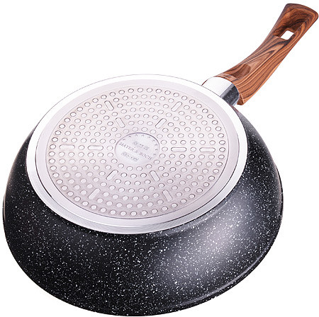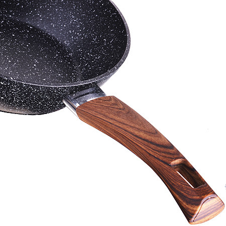 Сотейник выполнен из качественного штампованного алюминия и снабжен антипригарным покрытием особой прочности. Покрытие антипригарное жаропрочное, защищает сотейник от царапин, является экологически чистым и полностью безопасным, без вредных соединений и примесей. За счет того, что пища не пригорает и не пристает к покрытию, его легко и быстро мыть. Прочное индукционное дно сотейника устойчиво к повреждениям и деформации. Эргономичная ручка из бакелита не нагревается и не скользит в руке. Такой сотейник подходит для жарки и тушения различных блюд. Подходит для использования на всех типах плит, включая индукционные. Подходит для мытья в посудомоечной машине.