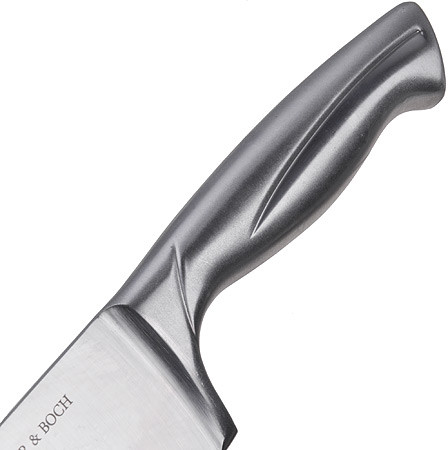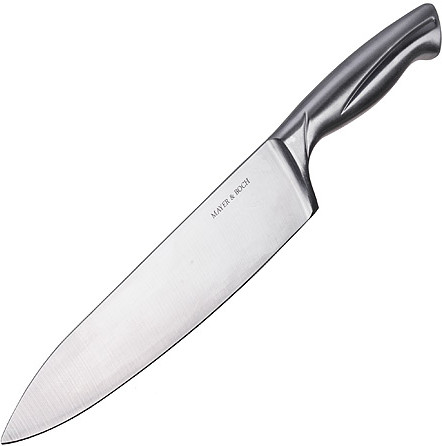Mayer & Boch Нож поварскойВ данный момент этот товар отсутствует в продаже. Возможно, у нас найдется аналогичный или похожий товар здесь. Нож с лезвием из высококачественной нержавеющей стали станет незаменимым помощником на Вашей кухне. Сечение ножа — клинообразно, что позволяет режущей кромке клинка быть продолжительное время острой. Поверхность клинка легко моется, не впитывает и не «передает» запахи пищи при нарезке различных продуктов. Эргономичная рукоятка ножа удобно ложится в ладонь, обеспечивая безопасную работу, комфортное положение в руке, надежный захват и не дает ножу скользить при использовании. |