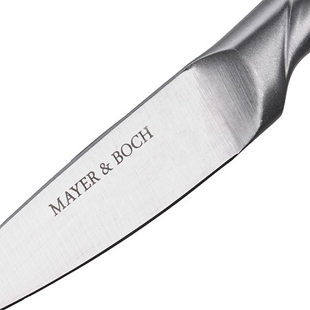 Mayer & Boch Нож универсальныйВ данный момент этот товар отсутствует в продаже. Возможно, у нас найдется аналогичный или похожий товар здесь. Нож с лезвием из высококачественной нержавеющей стали станет незаменимым помощником на Вашей кухне. Сечение ножа — клинообразно, что позволяет режущей кромке клинка быть продолжительное время острой. Поверхность клинка легко моется, не впитывает и не «передает» запахи пищи при нарезке различных продуктов. Эргономичная рукоятка ножа удобно ложится в ладонь, обеспечивая безопасную работу, комфортное положение в руке, надежный захват и не дает ножу скользить при использовании. |