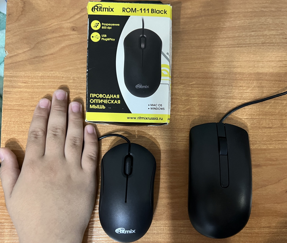 Мышка маленького размера, в отзывах пишут верно. На фото рука 10-летнего мальчика, купленная мышка и стандартная мышка. Разница очевидна 😁 Посмотрим как работает. В принципе для детей и девушек подойдет.