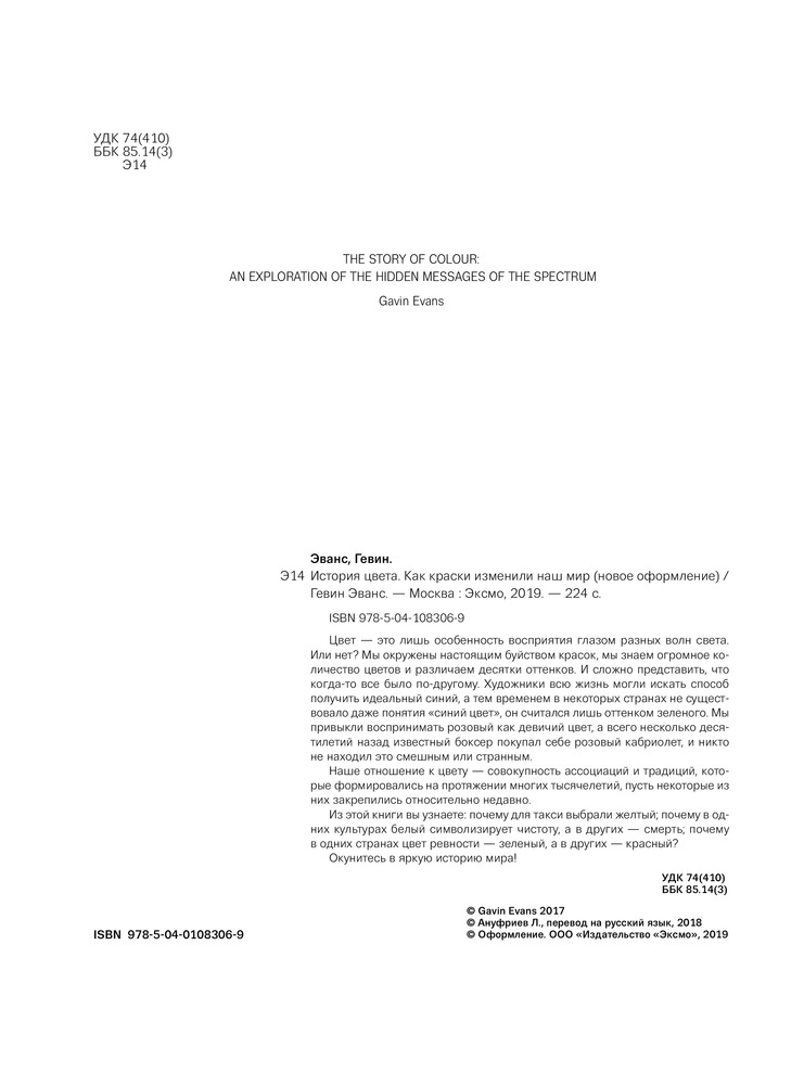 💳 Оплатить за товар можно при получении 🇰🇿 Есть бесплатная доставка по Казахстану от 1 дня 🎁 Копите бонусы с каждой покупки Серия: Подарочные издания. Искусство Цвет — это лишь особенность восприятия глазом разных волн света. Или нет? Мы окружены настоящим буйством красок, мы знаем огромное количество цветов и различаем десятки оттенков. И сложно представить, что когда-то все было по-другому. Художники всю жизнь могли искать способ получить идеальный синий, а тем временем в некоторых странах не существовало даже понятия «синий цвет», он считался лишь оттенком зеленого. Мы привыкли к ассоциации розового как цвета для девочек, а всего несколько десятилетий назад известный боксер покупал себе розовый кабриолет, и никто не находил это смешным или странным. Наше отношение к цвету есть совокупность ассоциаций и традиций, которые формировались на протяжении многих тысячелетий. Хотя некоторые из них закрепились относительно недавно. |