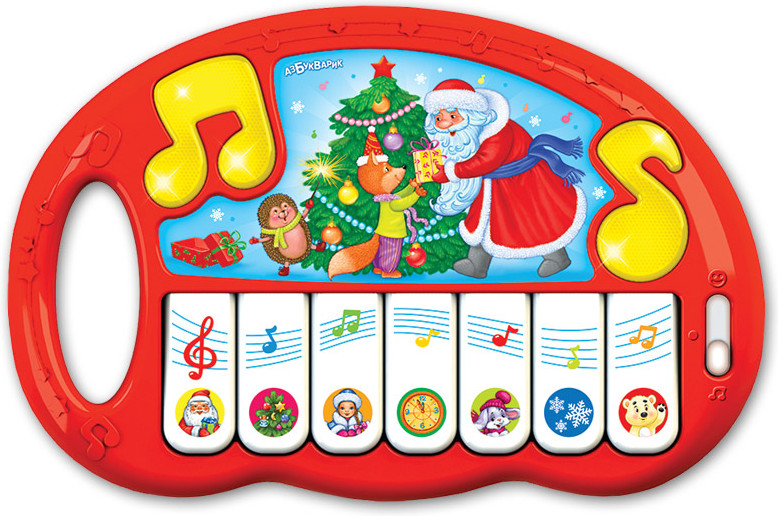 Азбукварик Пианино «Новый год»В данный момент этот товар отсутствует в продаже. Возможно, у нас найдется аналогичный или похожий товар здесь. Новогоднее пианино для самых маленьких со светящимися нотками! В режиме «Волшебное пианино» малыши смогут сыграть 6 популярных новогодних мелодий: «Ёлочка», «Рождественская песенка», «Почему медведь зимой спит?», «В лесу родилась ёлочка», «Ой, мороз, мороз», «Белые снежинки». А переключив режим, — послушать любимые песенки («Что такое Новый год?», «Песенка Умки», «Белые снежинки», «Песня Деда Мороза», «В лесу родилась ёлочка», «Кабы не было зимы», «Песня о снежинке») и мелодии («Три белых коня», «Ёлочка», «Расскажи, Снегурочка», «We Wish You A Merry Christmas», «Валенки», «Зима», "Колыбельная медведицы«). Каждого покупателя игрушки ждёт бонус — QR-код для скачивания интерактивной книжки «Караоке» в мобильном приложении «Азбукварик». |