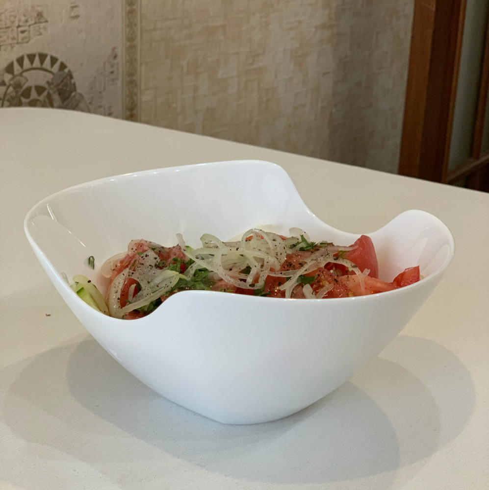 Диаметр 20 см. самый оптимальный для салата. Салатник очень интересен своим дизайном