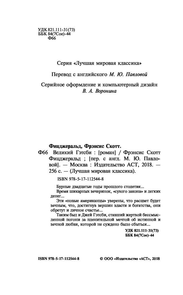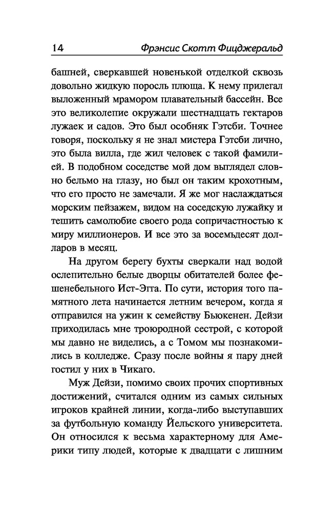 Великий ГэтсбиВ данный момент этот товар отсутствует в продаже. Возможно, у нас найдется аналогичный или похожий товар здесь. Серия: Лучшая мировая классика Бурные двадцатые годы прошлого столетия... Время шикарных вечеринок, «сухого закона» и легких денег... Эти «новые американцы» уверены, что расцвет будет вечным, что достигнув вершин власти и богатства, они обретут и личное счастье... Таким был и Джей Гэтсби, ставший жертвой бессмысленной погони за пленительной мечтой об истинной и вечной любви, которой не суждено было сбыться... |