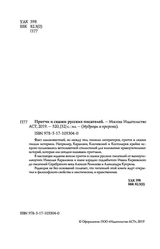💳 Оплатить за товар можно при получении 🇰🇿 Есть бесплатная доставка по Казахстану 🎁 Копите бонусы с каждой покупки Серия: Мудрецы и пророки Факт малоизвестный, но между тем, помимо литераторов, притчи и сказки писали историки. Например, Карамзин, Ключевский и Костомаров крайне искусно пользовались ветхозаветной стилистикой для изложения нравоучительных историй, которые мы сегодня называем притчами. В настоящее издание вошли притчи и сказки русских писателей от вышеупомянутого Николая Карамзина и ныне изрядно подзабытого Ивана Киреевского до писателей Серебряного века Алексея Ремизова и Александра Куприна. Читателей этой книги ждут открытия и философского свойства, мистические и нравственные. |