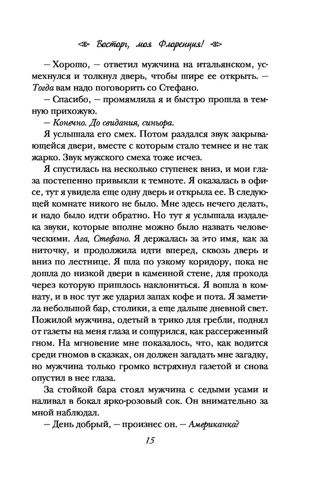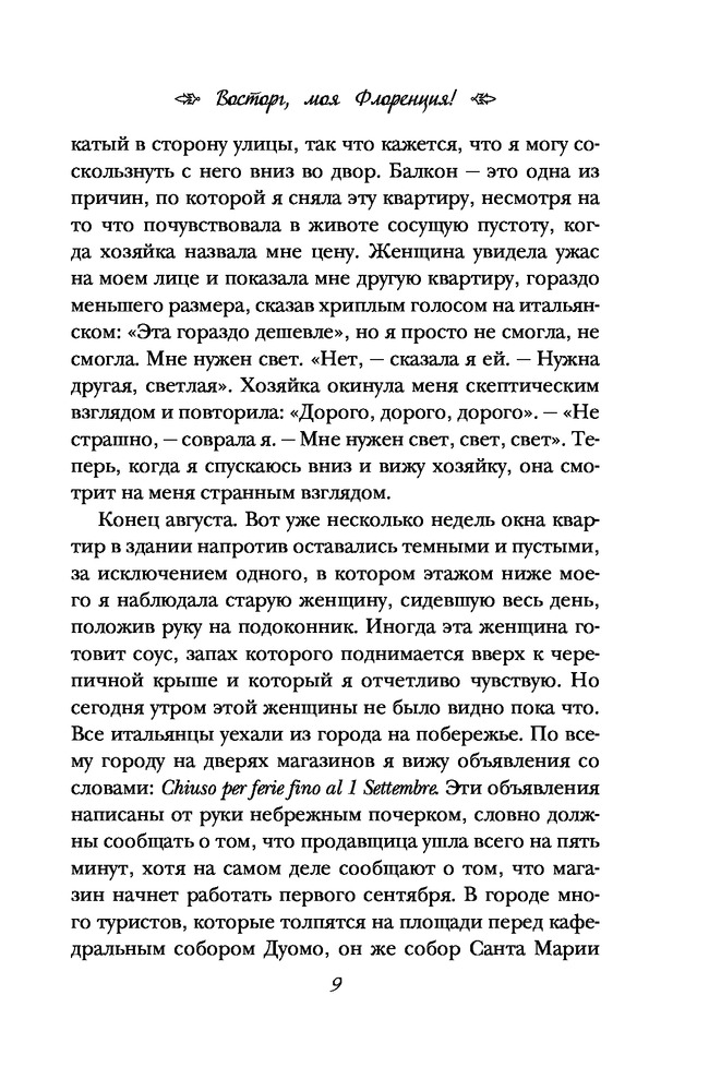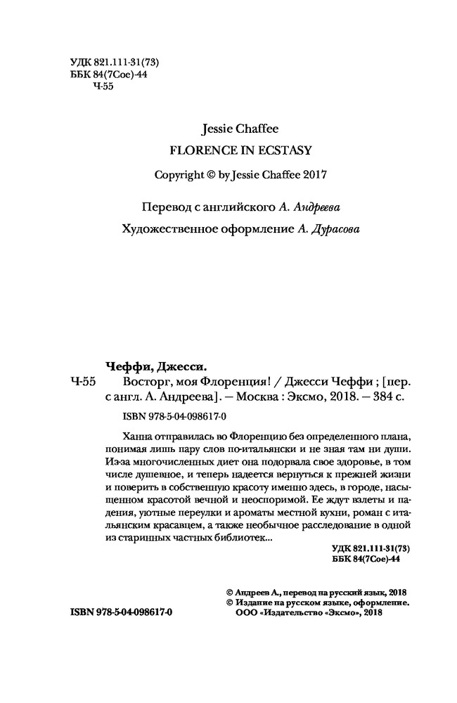 Восторг, моя Флоренция!В данный момент этот товар отсутствует в продаже. Возможно, у нас найдется аналогичный или похожий товар здесь. Серия: Реальная любовь (обложка) Ханна отправилась во Флоренцию без определенного плана, понимая лишь пару слов по-итальянски и не зная там ни души. Из-за многочисленных диет она подорвала свое здоровье, в том числе душевное, и теперь надеется вернуться к прежней жизни и поверить в собственную красоту именно здесь, в городе, насыщенном красотой вечной и неоспоримой. Ее ждут взлеты и падения, уютные переулки и ароматы местной кухни, роман с итальянским красавцем, а также необычное расследование в одной из старинных частных библиотек... |