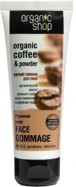 Organic Shop Гоммаж для лица «Утренний кофе»-25% +42 нежная текстура аромат кофе смягчает кожу хорошо отшелушивает не сушит