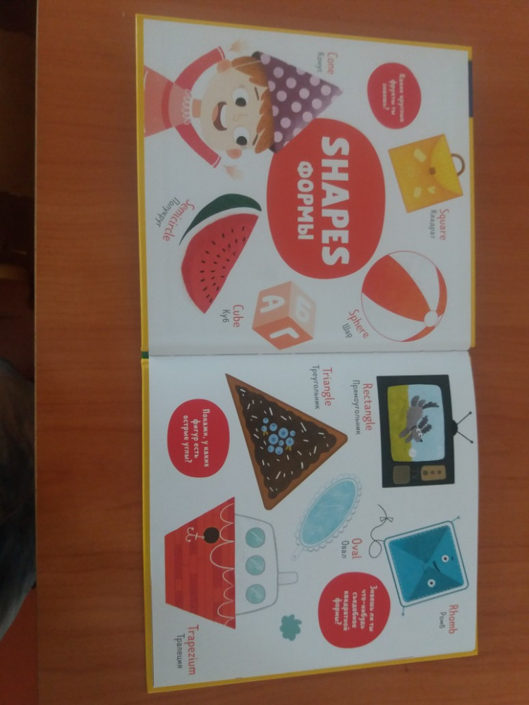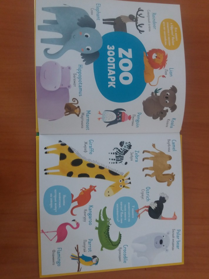 Книжечка маленькая, но очень красочная, легкая для первого знакомства с английским языком для малышей. 2летнему ребенку картинки очень нравятся.