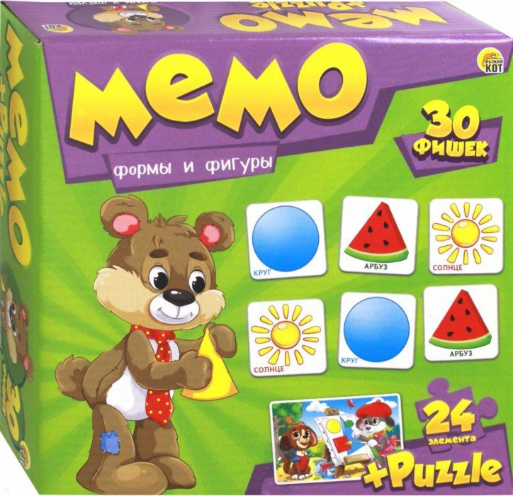 Мемо — одна из любимых детских игр. Легкие правила и красивые красочные картинки непременно заинтересуют ребенка, а все полезные навыки усвоят в игровой форме, что очень важно в развитии ребенка. Игра развивает внимательность, наблюдательность и память, а красочный пазл, идущий в комплекте, поднимет настроение всем игрокам.
