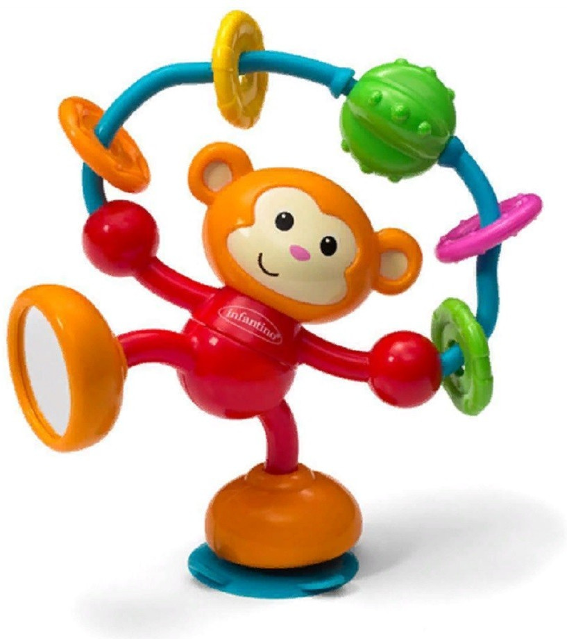 Infantino Игрушка-погремушка на присоске «Забавная мартышка»В данный момент этот товар отсутствует в продаже. Возможно, у нас найдется аналогичный или похожий товар здесь. Игрушка легко крепится к гладким поверхностям, таким как столы, стулья или окно автомобиля. Малыш может вертеть обезьянку, трясти погремушкой или увидеть отражение в зеркале, расположенном на ножке обезьянки. |
