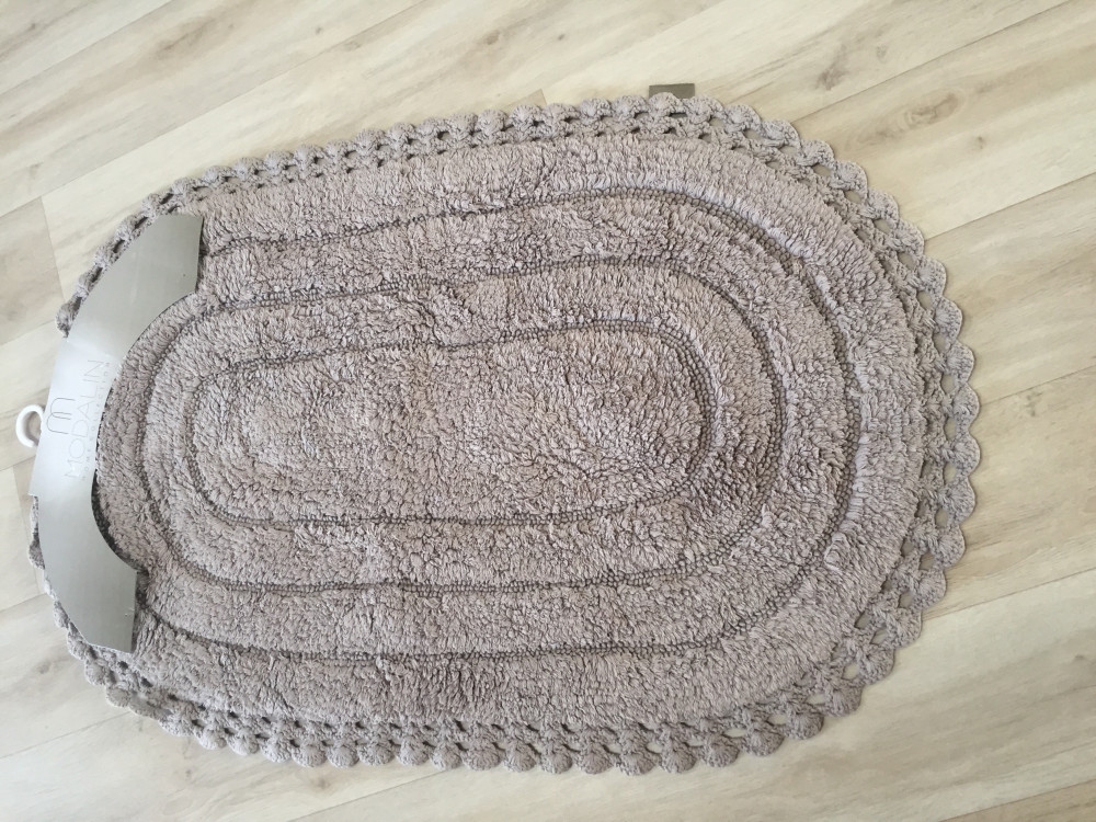Прекрасный коврик. Правда размер 60 х 100 см - это размер коврика без кружева. Кружево-6 см. Изготовлено в Индии. Все тонкости по эксплуатации коврика указаны в инструкции, которая находится в упаковке. Спасибо за прекрасный товар.