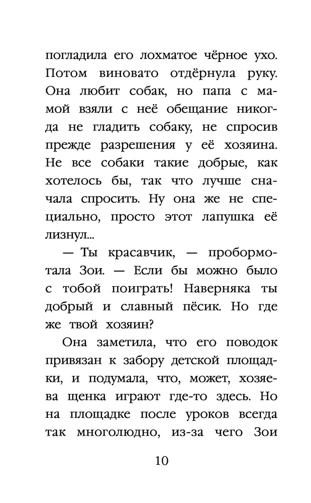 Щенок Скаут, или Мохнатый ученикВ данный момент этот товар отсутствует в продаже. Возможно, у нас найдется аналогичный или похожий товар здесь. Серия: Добрые истории о зверятах Зои всегда знала, что щенок — это очень и очень большая ответственность. Поэтому хоть она и мечтала о щенке, но не торопилась просить его у родителей. Однажды девочка познакомилась со Скаутом, щенком бернского зенненхунда, длиннолапым, непоседливым и очень дружелюбным. Хозяева Скаута недавно переехали в город, у них новая работа, и они не могли уделять щенку столько внимания, сколько нужно, отчего он начал проказничать. Зои вызвалась помочь — гулять с малышом, играть, дрессировать. Только с каждым днём она всё больше привязывалась к мохнатому ученику. Хозяева Скаута решили, что не рассчитали свои силы и решили вернуть щенка заводчику. Значит, Зои и Скауту предстоит разлука?.. |