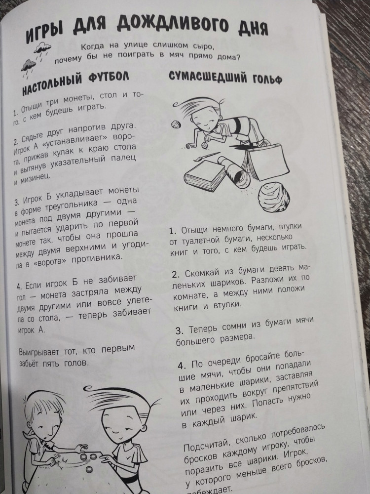 Отличная книга для мальчиков 6-15 лет - необычные интересные игры, познавательные головоломки и задачки, можно рисовать, можно заниматься одному и в команде! В-общем скучно с этой книгой не будет точно. Спасибо flip.kz