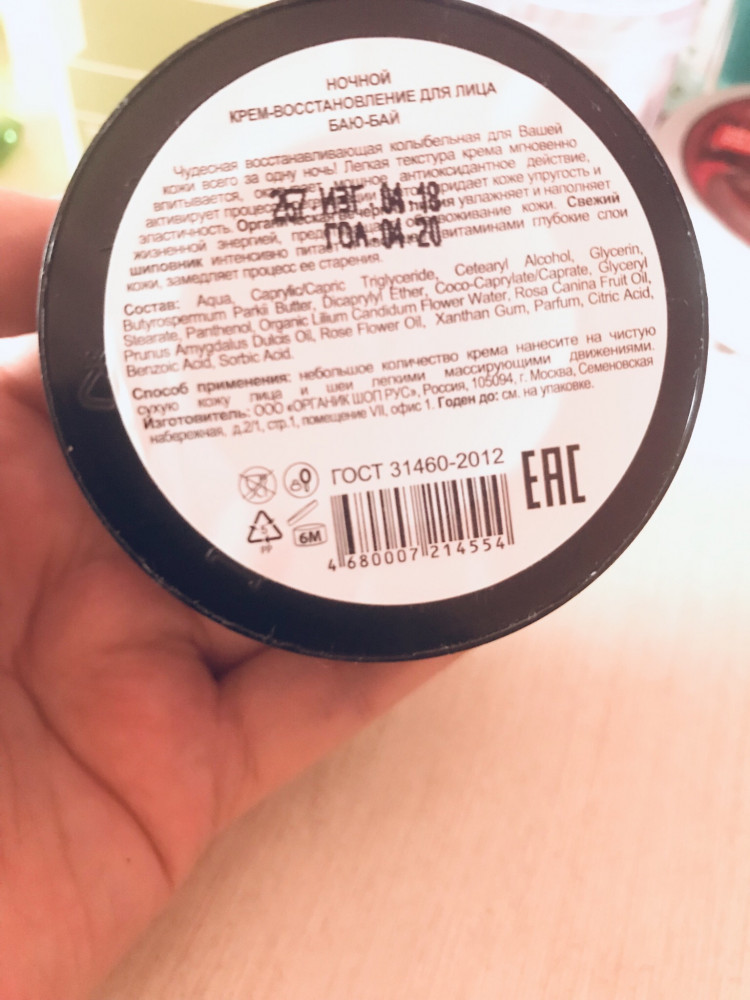 Organic Kitchen мне кажется , подходит больше , у кого нет проблем , у кого идеальная кожа , отдам этот крем маме , у меня кожа проблемная , жирная , есть расширенные поры , иногда бывает и прыщики вылезают . Лопаточки для набирания крема нет, что делает сам крем рассадником бактерий плюс под крышкой и по краям много засохшего крема, что не очень хорошо. Защитной плёнки нет, что мне не очень нравится - каждый может открыть уже в магазине, а срок хранения после открытия всего 6 месяцев. При проверки на комедогенность на одном из сайтов, анализ показал такие результаты (от 0 до 5, где 0 вещество не комедогенно, 5 – высокая степень комедогенности). В исследуемом препарате обнаружены комедогенные ингредиенты: cetearyl alcohol - уровень комедогенности - 2 benzoic acid - уровень комедогенности - 2 Состав : Aqua, Caprylic/Capric Triglyceride, Cetearyl Alcohol, Glycerin, Butyrospermum Parkii Butter, Dicaprylyl Ether, Coco-Caprylate/Caprate, Glyceryl Stearate, Panthenol, Organic Lilium Candidum Flower Water, Rosa Canina Fruit Oil, Prunus Amygdalus Dulcis Oil, Rose Flower Oil, Xanthan Gum, Parfum, Citric Acid, Benzoic Acid, Sorbic Acid. Пластик : 5 - PP (ПП) Полипропилен многоразового использования часто встречается в качестве материала для пищевых контейнеров. Он относится к группе самых безопасных пластиков наряду с материалом 2 (HDPE). Вроде бы почти идеальный крем , но точно повторно покупать себе не буду , не подходит , у меня на утро будто поры стали ещё шире .