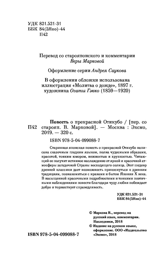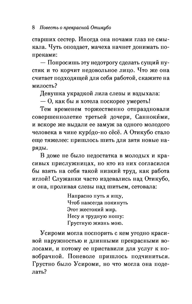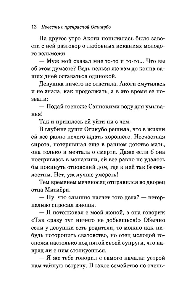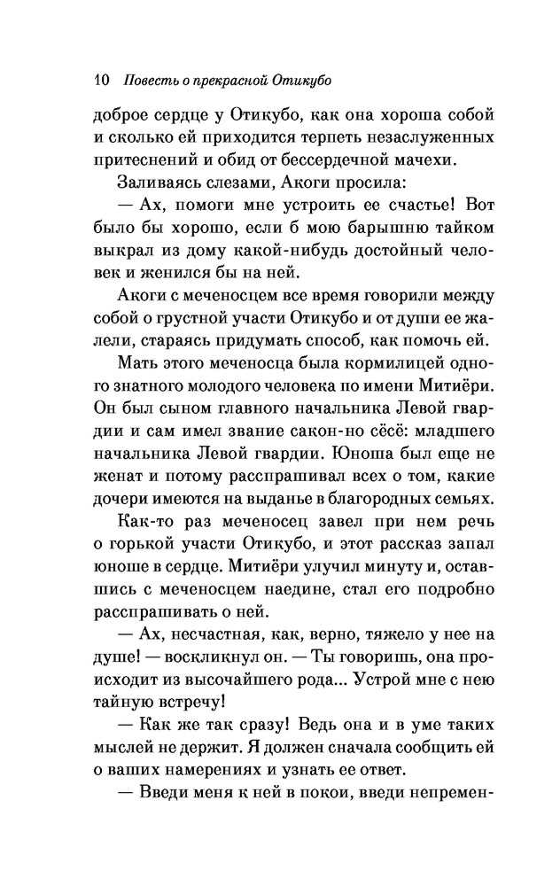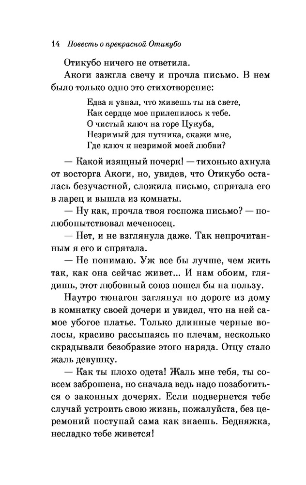 Повесть о прекрасной ОтикубоВ данный момент этот товар отсутствует в продаже. Возможно, у нас найдется аналогичный или похожий товар здесь. Серия: Pocket Book (обложка) Старинная японская повесть о прекрасной Отикубо написана сказочным гладким языком, полна чудесными образами, красотой, тонким юмором, нежностью и хрупкостью. Читающий ее получит истинное наслаждение от яркой и красочной атмосферы загадочной страны восходящего солнца. Этот шедевр древней классики дает возможность прикоснуться к древним традициям, познакомиться с нравами и бытом Японии десятого века. В насыщенной красочными подробностями и тонкими поэтичными наблюдениями повести благодаря чуду любви побеждает добро и торжествует справедливость. |