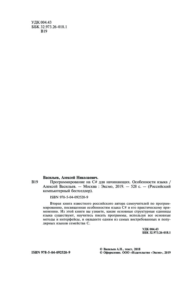Программирование на C# для начинающих. Особенности языкаВ данный момент этот товар отсутствует в продаже. Возможно, у нас найдется аналогичный или похожий товар здесь. Серия: Российский компьютерный бестселлер Вторая книга известного российского автора самоучителей по программированию, посвященная особенностям языка C# и его практическому применению. Из этой книги вы узнаете, какие основные структурные единицы языка существуют, научитесь писать программы, используя все основные методы и интерфейсы, и овладеете одним из самых востребованных и популярных языков семейства C. |