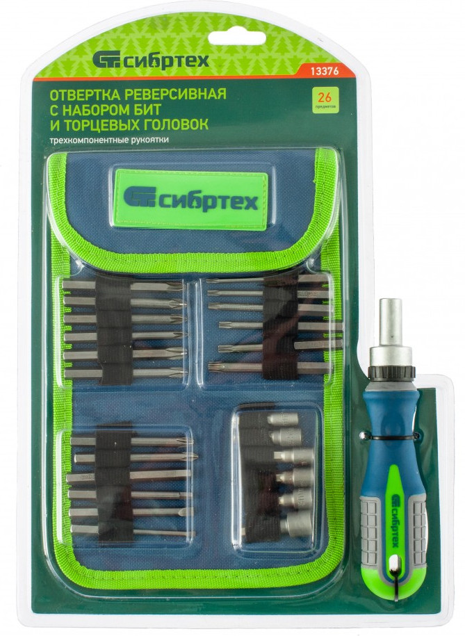 Сибртех Отвертка реверсивная с набором бит и торцевых головок-20% +255