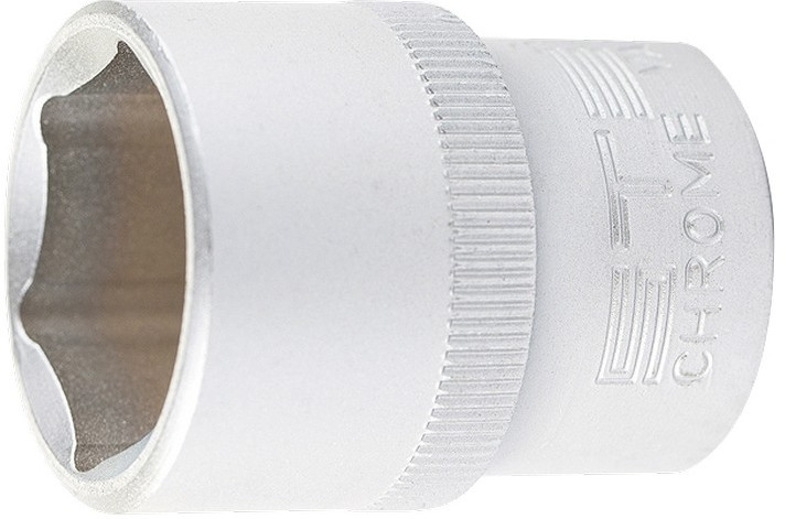 Сменная торцевая головка повышенной износостойкости из хромованадиевой стали. Твердость материала рабочей части головки — 42 HRс, что соответствует требованиям ГОСТа. Матовое хромоникелевое покрытие. Торцевая головка имеет динамический 6-гранный профиль с увеличенной площадью контакта с деталью, что снижает деформацию граней крепежа при высоких нагрузках. Головка имеет посадочное место для присоединительного квадрата 1/2. Предназначена для эффективного монтажа болтовых соединений.