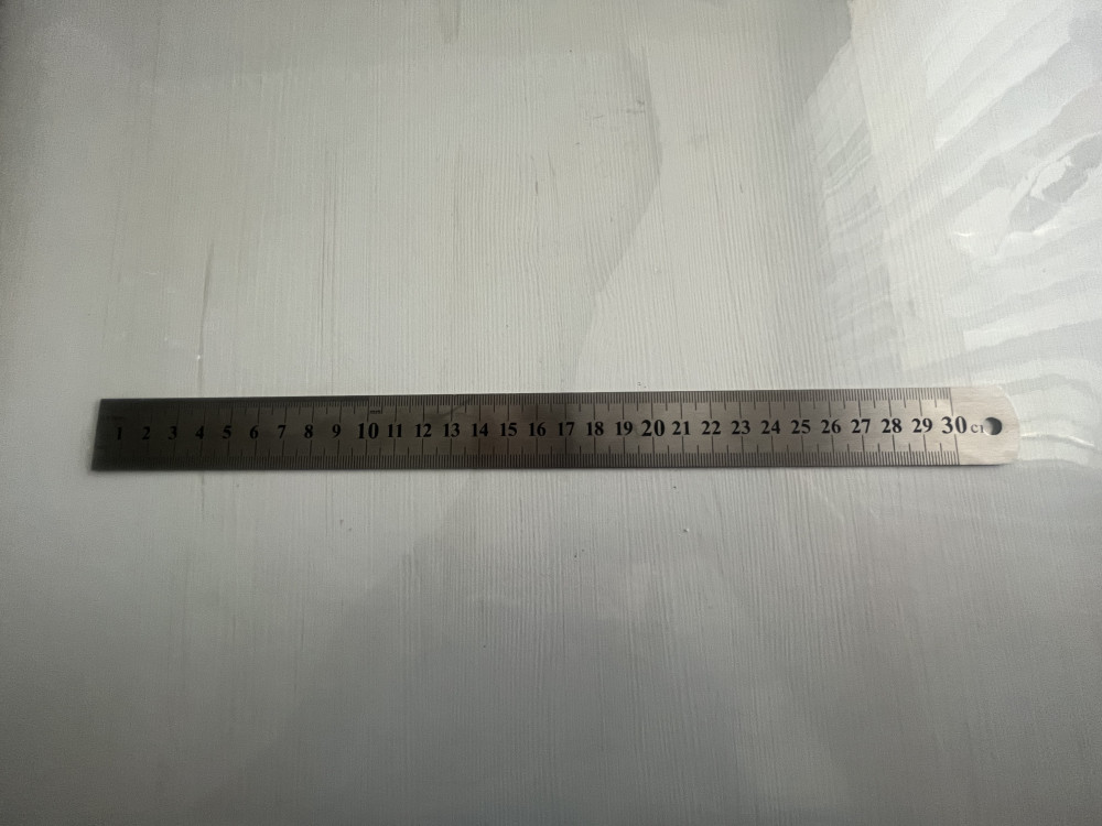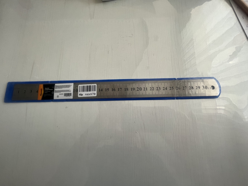 Линейка отличная. Не гнётся, чёткая цифровая разметка (без погрешности), ширина 2,7 см. Не так сильно бликует при свете, как другие металлические линейки.