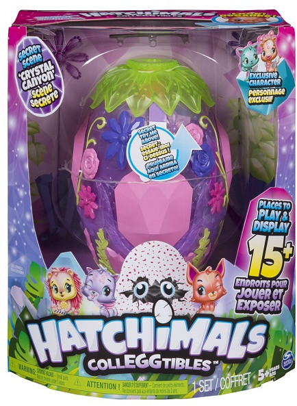 В данный момент этот товар отсутствует в продаже. Возможно, у нас найдется аналогичный или похожий товар здесь. Hatchimals — это очаровательные питомцы, которые появляются на свет из яиц. Они очень любят играть и веселиться, им так нужна забота и ласка. В игровом наборе большое яйцо, состоящее из лиловых кристаллов с раскрывающимися стенками. Внутри него от посторонних глаз спрятан волшебный мир Hatchimals с цветами, качельками, горками, скамеечками. Внутри можно расположить до 15 коллекционных фигурок. Одна эксклюзивная фигурка-сюрприз есть в комплекте.