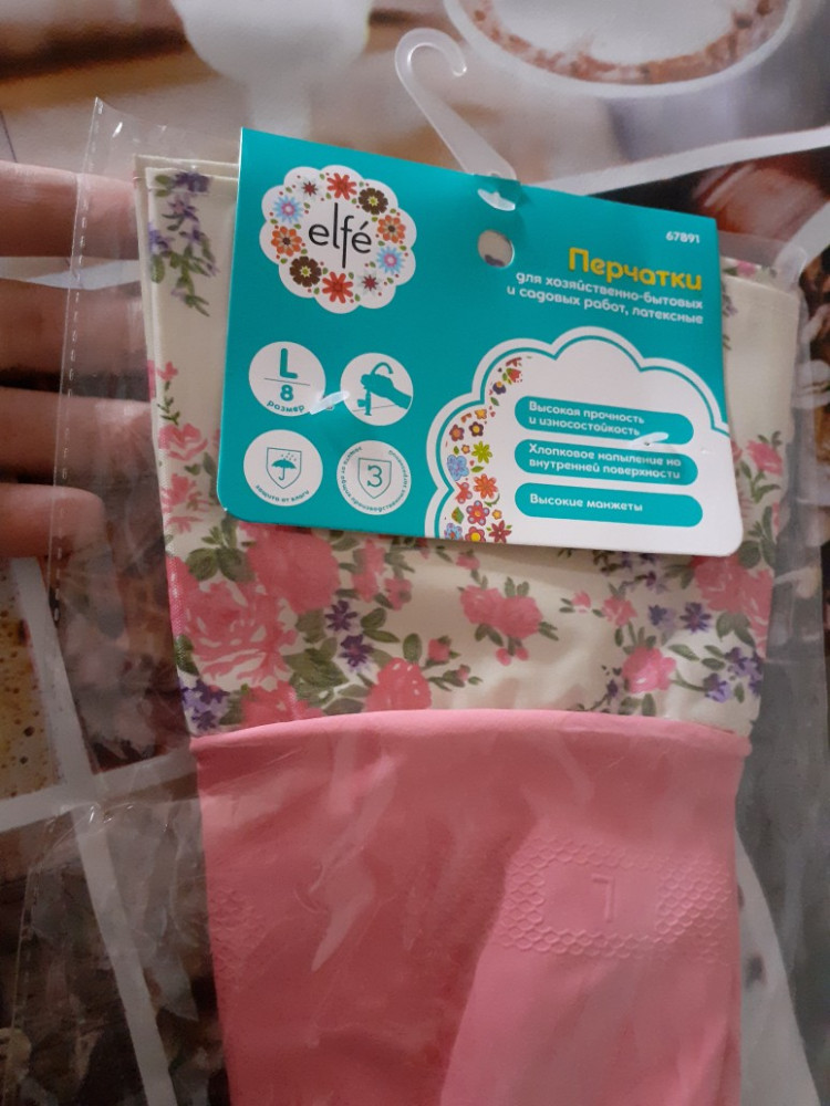 Перчатки замечательные!С помощью цветного манжета пришитого на перчатки,очень удобно надевать их. Качество латекса достойное. Посуду в руках надо держать крепче,так как из за моющего средства в руках скользит.Не оставляют и не впитывают посторонние запахи.Пятен на латексе не остаётся.Как новые ,после двух недель использования.Рекомендую .Спасибо большое за качество и Флип за предложенный товар.